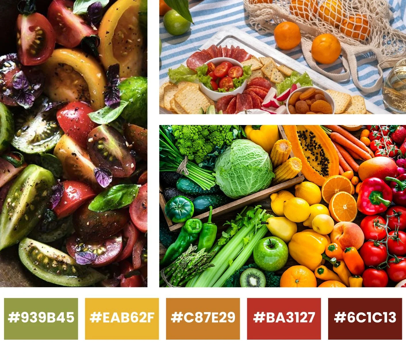 A colour palette is developed based on the mood board and is applied to the design of user interfaces, food cards, logos, and documents. Blended watercolor is used as a background and also for creating edges to be tracked by an AR camera. The art style is to create a vivid and harmonious sense of healthy food.