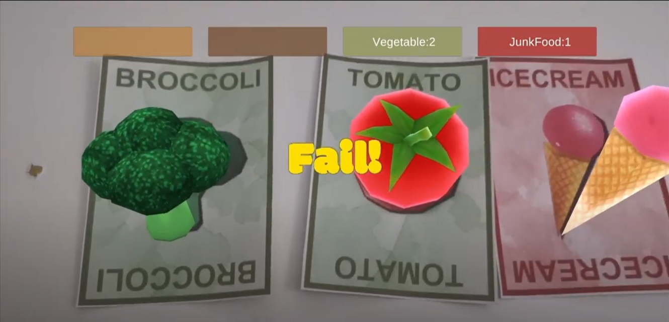 As for design parts, I will add more animations of the virtual models. I will also suggest how to improve the choices once the users fail in the food-matching process. Lastly, I will also think about an extra button to play the voice instead of directly playing the sound. These future developments need a lot more consideration on the layout and visual representations to avoid information overlap and reset.