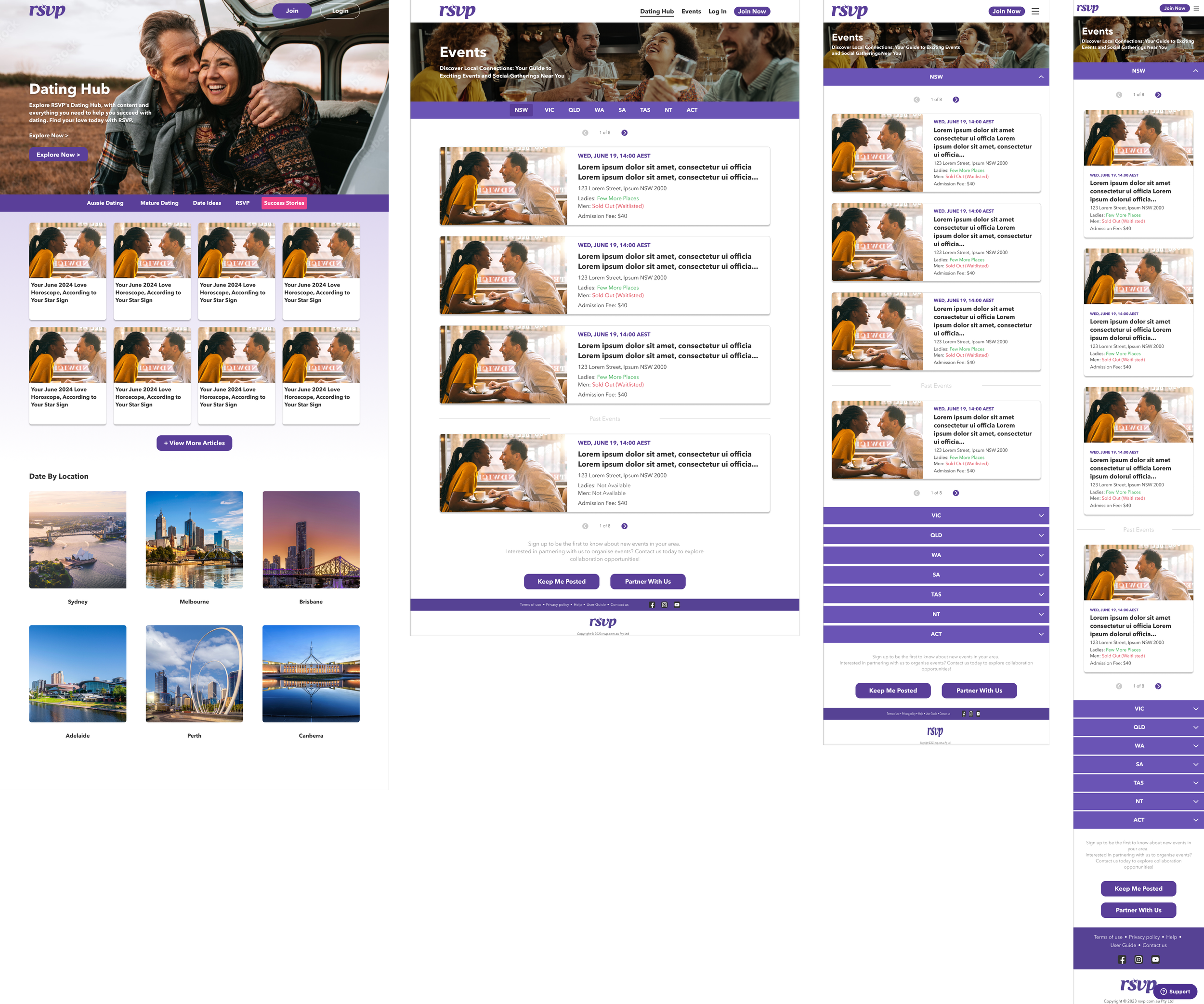 In my role as the solo UX/UI Designer at RSVP.com.au, I led the design of their React Native app from the ground up, overseeing every detail from information architecture to a comprehensive design system that enhanced consistency across mobile and web platforms. This system aligned seamlessly with RSVP’s mobile web and desktop web, creating a cohesive, high-quality user experience across all touchpoints. My approach focused on simplifying navigation and enhancing ease-of-use, which was especially important as RSVP’s primary user base increasingly shifted to an older demographic.