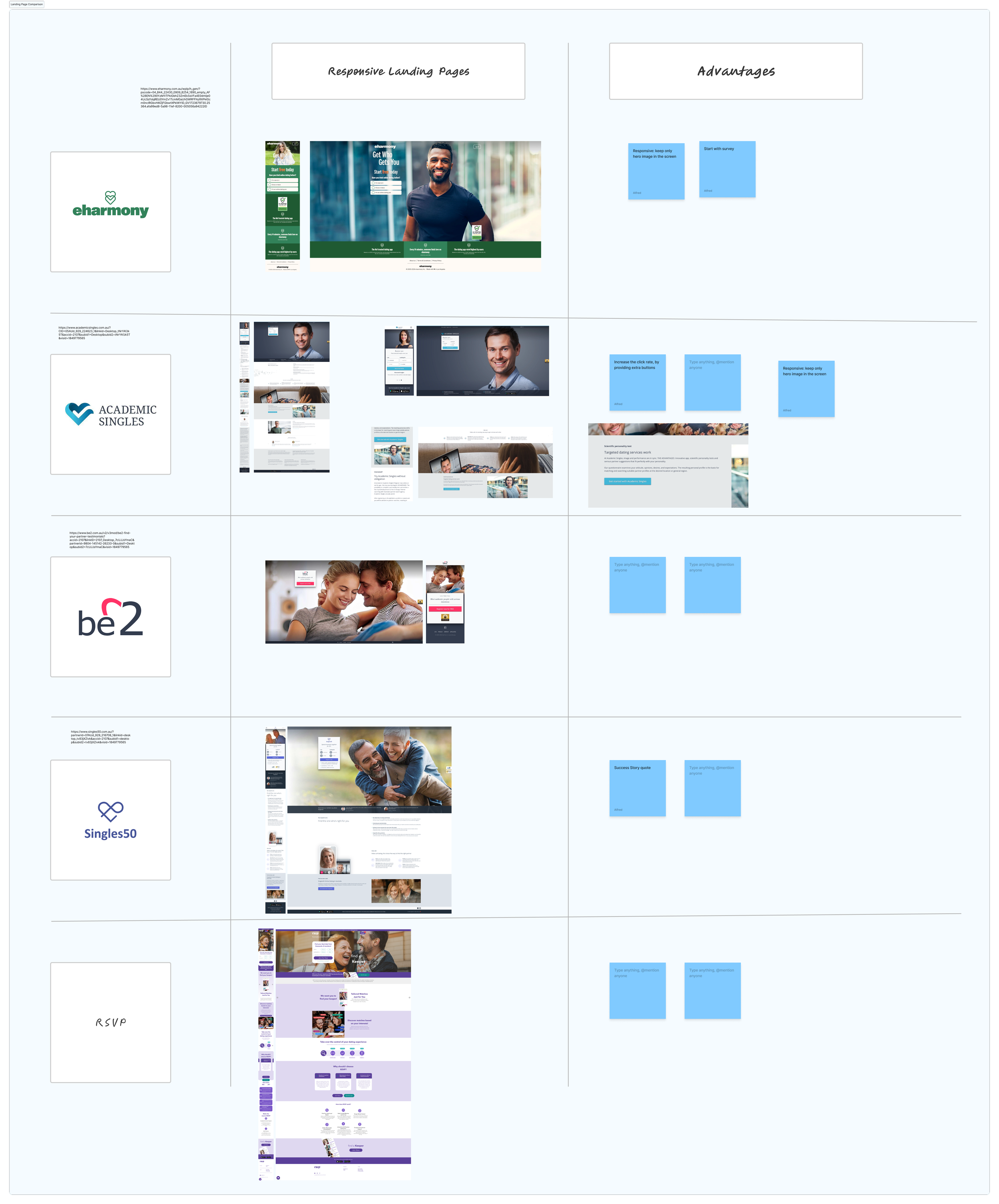 Conduct Competitor Analysis: Perform competitor analysis to benchmark RSVP’s digital experiences against industry standards. Use this analysis to inform design updates and strategic decisions, ensuring RSVP’s platform remains competitive and aligned with best practices in the dating and social networking space.